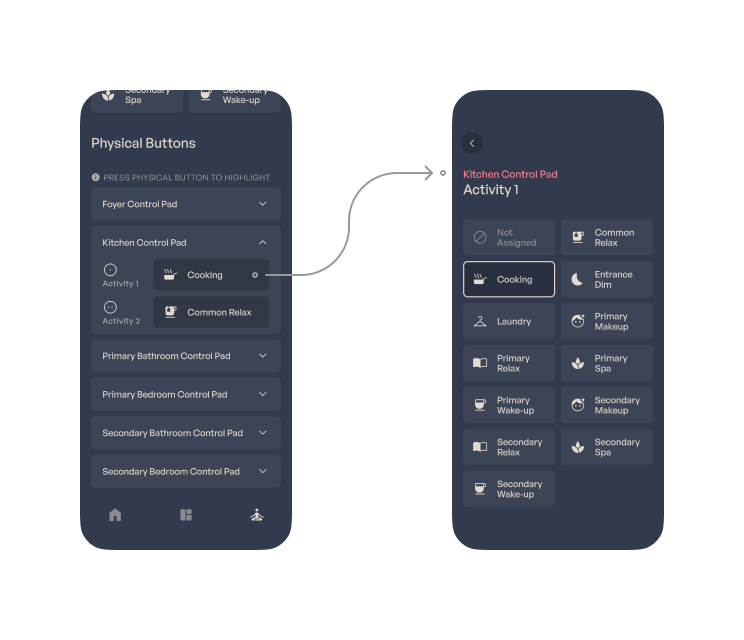 To assign an Activity to a Control Pad, navigate to the Activities tab and scroll to the Physical Buttons section.